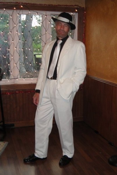 We had a "Howling" good time on Halloween Eve. There were 30+ singers and only 15-20% came in costume. My wife and I decided late to dress for the occasion, because the owners didn't want to spend any money on decorations. I'm glad that we did a little something. I also didn't have much time to grow my gangster beard so I used some theater make up and darkened the stubble. Attachment: