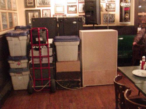 She started buying one regular a week a beer to help her with the speakers. $1.50 for a 12oz beer, and the loyal regulars would usually help her bring everything inside and hoist the heavy speakers onto the speaker stands. Same thing at the end of the night, she would give one regular a beer to help her tear down the heavy speaker stands.