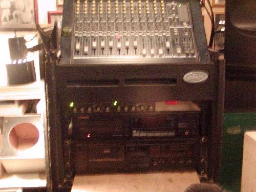It was a full rack, with a 1402 VLZ Pro Mackie mixer, 4U rackmount PC, Alesis rackmount EQ, Alisis MidiVerb, Pioneer LaserDisc player, and it all ran through a t.c. electronic finalizer before hitting a three way stereo crossover and feeding 3 QSC amps.