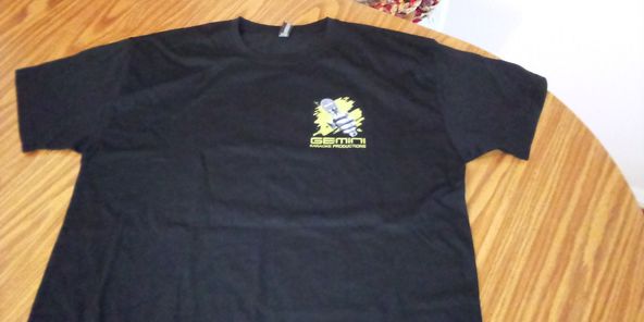 GK Productions wrote: The logo Alan B created for Gemini Karaoke has now found it place on tshirts left chest and full back...and yes its neon green logo but you cant tell from this pic very nice looks great!