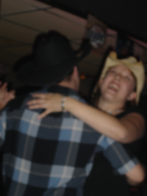 File comment: A really blury (but kinda cool) pick of me dancing at the contest in my hat!