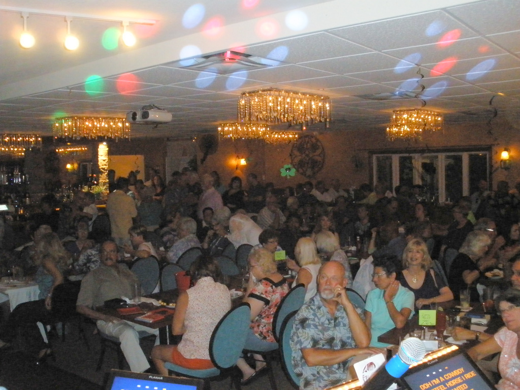 I did my show on Wednesday to an even more packed house than the posted picture shows. I had 42 singers and a lot of them were first timers, and wouldn't you know the A/c system gave out! The temperature that evening was a balmy 85 degrees at 7 PM. Fortunately there are three door ways to the outside because it was getting very warm very quickly. The owner had a 42 inch shop style fan and he used it to suck the hot air out, and the party continued. Even with crowds that big he will not put another karaoke night on the schedule  If he did he might be able to afford a new A/C system