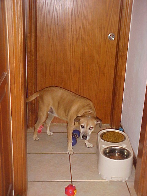 I happened to notice tonight that she had 7 of her binkys around the food bowl area there are more in the yard & in other areas of the house. And no! they are not spoiled!