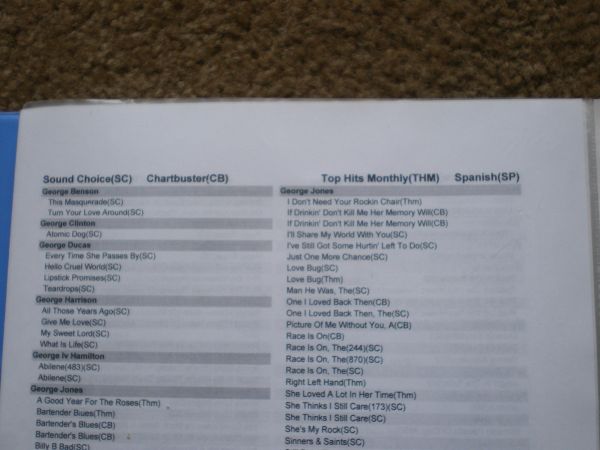 cueball @ Sat Jan 16, 2010 5:38 am wrote: Here's another good reason to have the Manu codes listed in your books... Those Singers who DO actually care what version they are going to sing from (whether it be a preference of theirs, or just a curiosity to know who made that disc), Then he had this additional suggestion for why songbooks should have manufacturer's codes: cueball @ Sat Jan 16, 2010 5:38 am wrote: SOME PARTS EDITED OUT about 2 years ago... I was at a show, and someone was singing Eric Clapton's "Wonderful Tonight. " I happened to like the version that was being sung, and, to my surprise, I actually did not have that song in my vast library. I could have gone out and bought that song on a SC disc (since I know it's listed on one of their discs), but I decided that I wanted to get that version instead. I asked the KJ what version that was on (since he didn't have his book listing the Manu codes), and he showed me the disc. It is on a Fat Cockeral disc. I never heard of this brand before (yes, there are many brands that I haven't heard of, in spite of how many years I've been involved with Karaoke), so I searched for it, and when I found it, I bought a copy of it. I wonder, though, if Cueball would have had known anymore about the disc the singer was using if the songbook had listed the manufacturer, I'll assume - FC? Or would he still have spoken with the KJ? The circumstances that Cueball described really got me curious. Which lead me to consider the following post of mcky57 made in response to Jian's question about how to produce a neatly organized songbook that clearly defines each publisher? mckyj57 @ 16th January 2010, 12:44 pm wrote wrote: Presley, Elvis Teddy Bear MM, SC, SF, CB, Hurt MM, SF Love Me Tender SC, SF, CB, LG