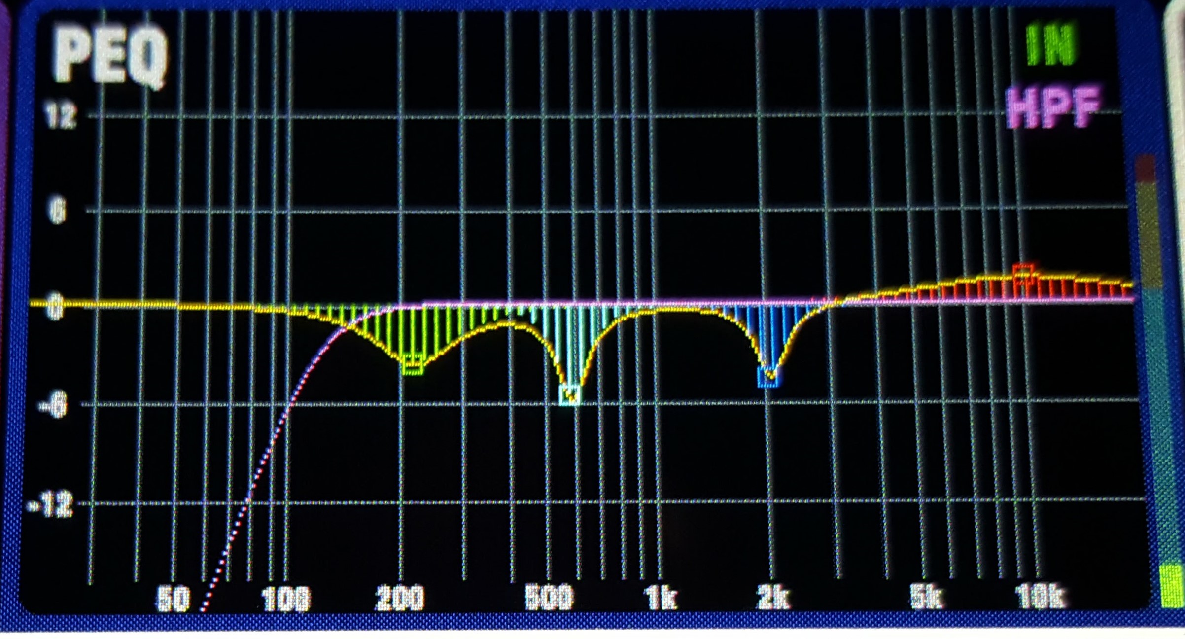 6.3k up a tad on the master eq (vocal definition), 4k dip on master eq ( a pain freq typically bad with titanium tweeters ). 16k up a tad (air).