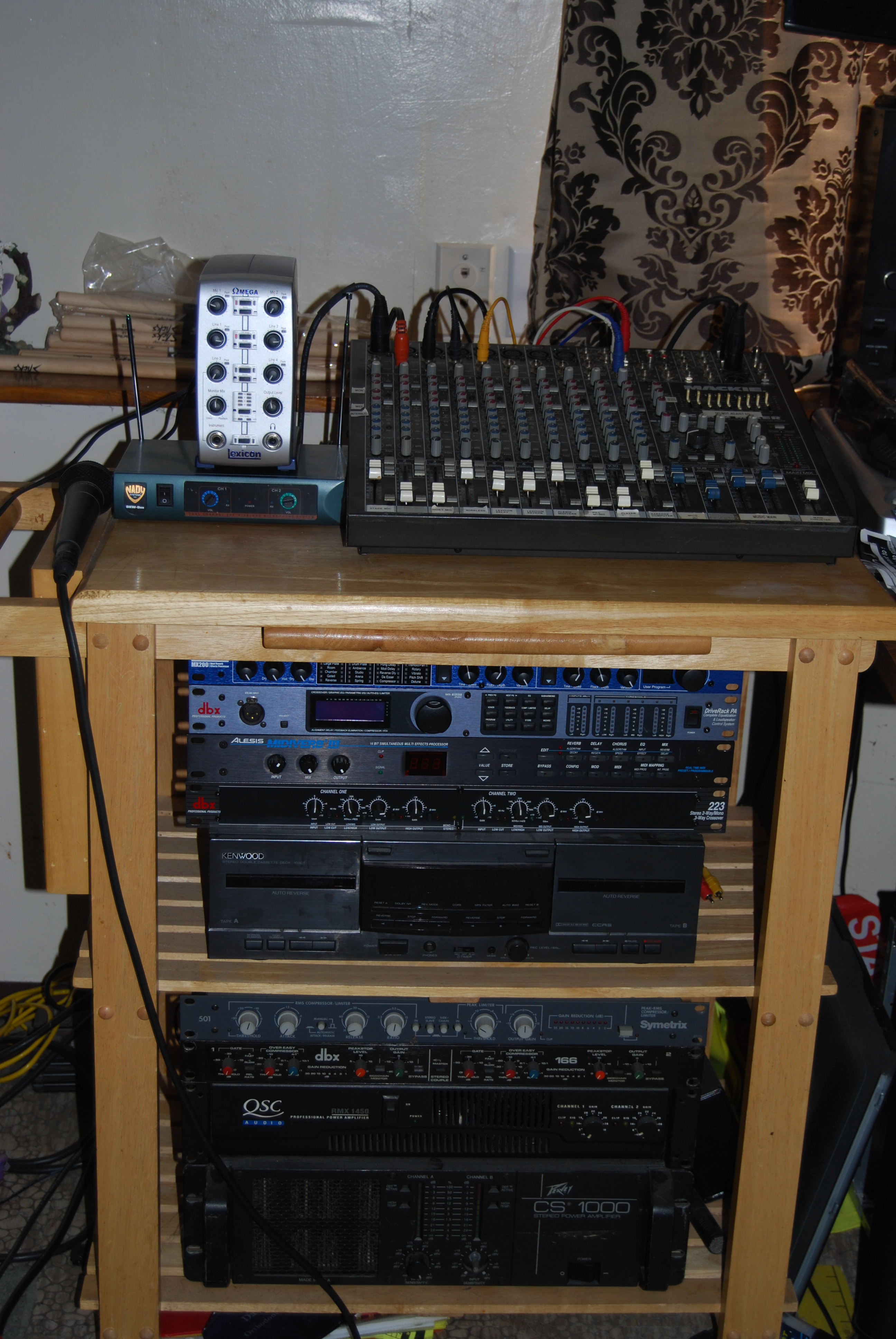 Alright got a couple pics. Here is my 'karaoke' room at home. And a pic of my home system. Attachment: