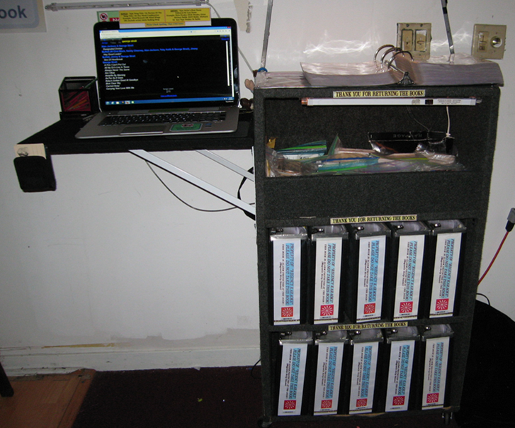 michaeldiapers wrote: as vertical as possible would be preferred as well, I looked at laptop stands, and they just took up too much room. So am I going to have to run down to Home Depot for a DIY project? Or does anyone have any insight? DIY – before going to HDepot, do the homework first, what are the items to buy; it'll save you the trip of going back. Write down the measurement of the cabinet you intend to make, it will depend on how many tier, how many books. Once you determine your measurements i.e., vertical sides, back, top & bottom boards, compartment trays, etc. Buy 1 big a** plywood at hdepot  (I don’t know those flatboard measurements) then have them cut it for you. First 2 cuts are free, 50 cents per cut thereafter (no room for error). I normally cover the inside boards first prior to putting them together. Outside wrap around is piece of cake (I want one + cup of coffee). Put it together with wood glue & screws, then like I mentioned above wrap around with black dj carpet. Use utility blades, not scissors. http://www.ebay.com/itm/15L-backed-BLAC ... 4158e6bb1dYou will need glue spray. 2 cans should do it. http://www.homedepot.com/p/3M-Super-77- ... /100067550For laptop, make a wing to the left or right supported by an “L” shelf bracket. http://m.homedepot.com/p/Richelieu-Hard ... 202205509/All available at Hdepot except the carpet. Don't settle for substitutes (or you may but the links above are highly recommended for good permanent adhesion). I posted this before. See? Easy does it. Good luck, Michael! Attachment: