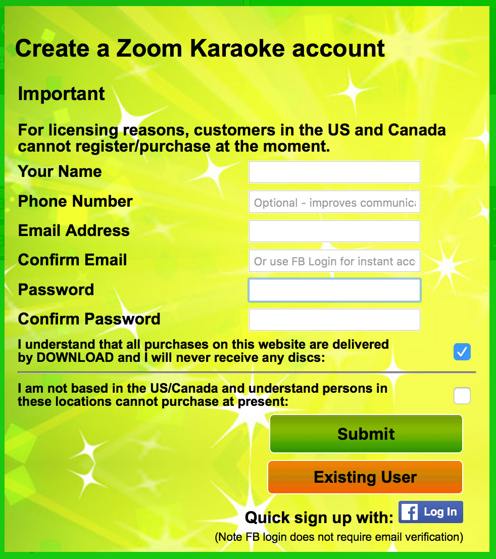 I can't buy anything any more from Mr entertainment because they are located out of the USA and also selectatrack.com which I was an average buyer from there bought downloads almost every month from there some times 20 bucks worth , then some people at singsnap.com , the most arrogant site ever found out some of their people was asking me how I put songs on soundcloud.com and youtube and they told on selectatrack.com to the lic board or the fcc or who ever they have a license with and now they aren't allowed to sell to anybody from the USA any more that's what I got told HEY YOU GUYS KNOW OF ANY OTHER SITES I CAN GO ON THAT I CAN BUY KARAOKE DOWNLOADS ??? been buying them now only backing tracks .