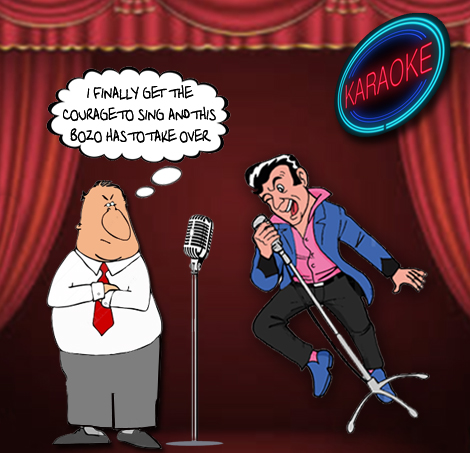 Lonman wrote: CafeBar wrote: I had a cartoon on the front of my book years ago depicting this situation. It showed a creepy-looking guy sidling in on the stage with a mike, and the singer (with a thought balloon) thinking, "I finally got up to sing, and now this loser's barging in."