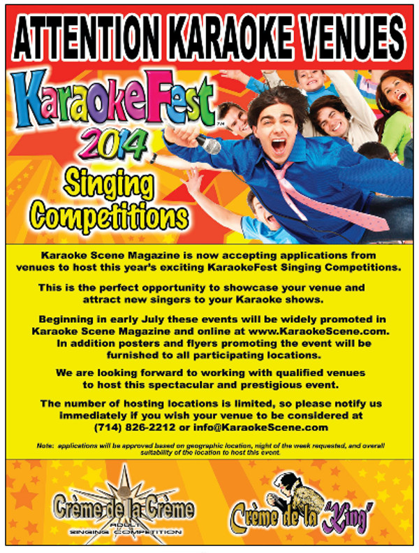 KARAOKE SCENE MAGAZINE ONLINE! - KaraokeFest - Venues Administrative Announcements Karaoke Scene's Karaoke Forums Home | Contact Us | Site Map
