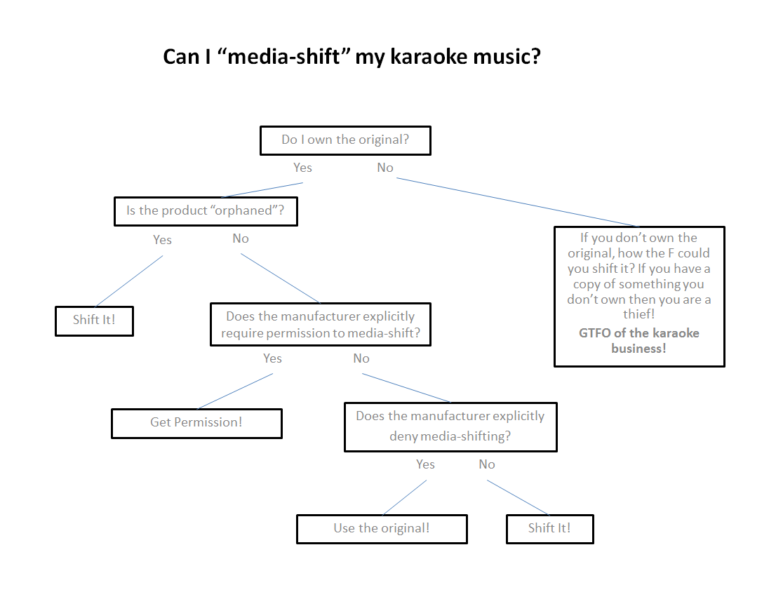 How long have you been shifting? Honestly -- how long have we been using computers for shows? 9 or 10 years? Most of us, anyway. What was Sound Choice doing back then, and all the time since up until a couple of years ago? Sleeping? No. They didn't give a crap. They still don't. They just care about how much money they can get you to pay them. If they really cared about shifting, they would have instituted a policy when all of this started, instead of waiting until we were all comfortably ensconsed in the world of computer Karaoke. This is the kind of thing you say to justify the fact that you are so dependent upon their products and upon doing computer Karaoke (who on earth would ever go back to using discs after 10 years of computers?) that you have to pay them. You do it and act like it's actually good for you. Have at it, but I don't want to have anything to do with it. (and yes, I know -- you've heard this from me before -- but I figure I'm allowed to give my argument AGAIN when all of you keep giving yours).