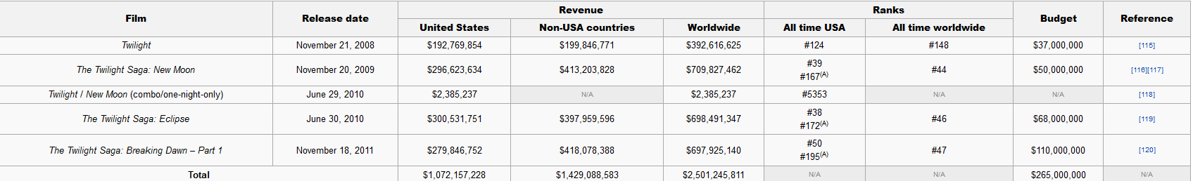 Workmen wrote: I find i hard to feel for the Actors, Writers, Directors, Share Holders, and anyone else in the contract when movies like Breaking Dawn gross $140 Billion. I don't approve of the piracy but these people are not in the common persons corner! Anyone that follows the Twilight series is not all there.. IMHO The actual numbers are here.. Attachment: