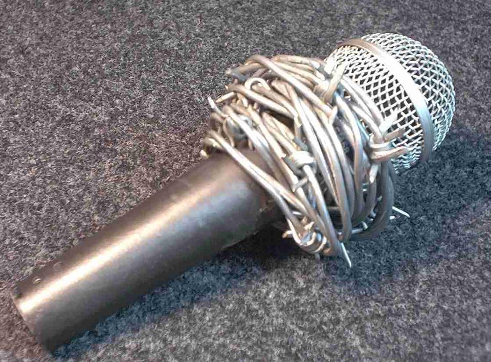 Screw that....make real ones from real barbed wire and TOSS the mic to them.....