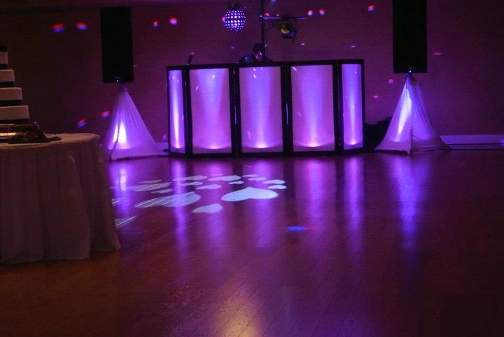 Topher, our standard rate is $800. This includes the lighted facade and 2 speakers. In this set up I tossed in the speaker stand scrims as they didn't want to add subs (we just put the 153'sday in deep bass) The uplighting around the room was charges out at $45 per light The gobo projector of hearts was $75 (I charge $150card when i have to get a custom one made, such as their name and date etc) Because of the room size we added 2 speakers and that was an additional $100 We also provided sound outside for the wedding, 2 speakers, 2 cordless mic on stand and mixing board for the acoustic people to sing. This was an extra $150