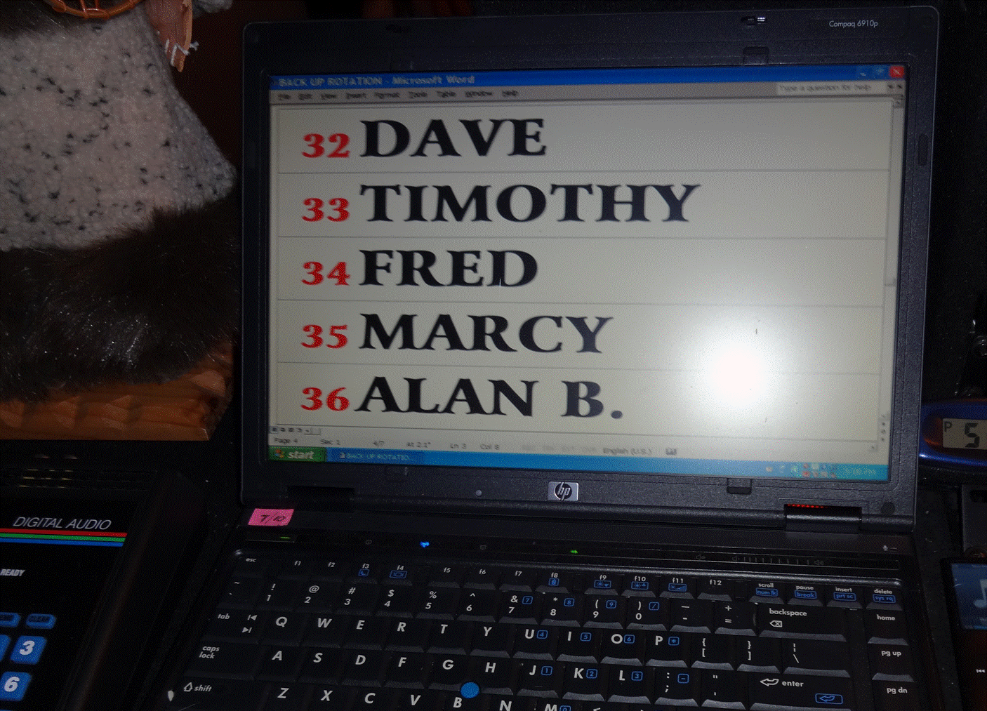 Brian A wrote: Alan B wrote: ...and have you noticed just how well CompuHost does the scroll? Yes, I know that there are a few programs that can do a scroll but none of them can do it as well as CompuHost. CompuHost does it with such power, such style, such grace. It does it beautifully and most of all, it does it with love. Karma: I don’t use the continual singer crawl feature. Been using microsoft word laptop notification method for years, type singers’ names displayed on two 25” tv’s, five names at a time, then just scroll down (a/b switch so they can't see what I’m typing). They immediately know who’s next & also gives them an approximate time for bathroom or smoke breaks before they’re up. I probably get a lot of flack for this but my singers & I find it kinda distracting to look at the song graphics with the scrolling marquee rotation going below. But that’s just me…………matter of personal preference! Scenario: Alan submitted his request slip 1½ hrs ago, I could’ve inserted his name within the rotation, but he’s such a b**thole he earned the spot at the very end! (kidding, alan)!  Attachment: The attachment Alan.gif is no longer available I don't see what you're talking about, Brian. On my computer, I see your laptop with your message on it...