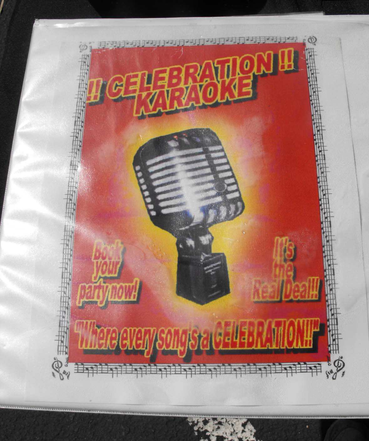 A few more pics. And YES, I am ALL DISC ALL THE TIME!  And yes I am "LEGAL", having had my SC audit conducted by Kurt Slep himself, the Oregon Investigator at the time and KJMANN observing at Kurt's hotel room near Portland International Airport during his last visit with open to public question and answer session. 500+ discs at 15 songs per disc= approx. 7500 songs titles with few repeats. Only 25+ SC discs needed. Very solid assortment to choose from. If you cant find something to sing with my selection, then there's something wrong with you. Personal store-bought discs are always encouraged! No BURNS! System: 300w Yamaha portable mixer/amp, 300w Yamaha 12 mains with stands, 3 steel base mic stands, Shure 55m Audiovox Sennhieser mics, 9" TV (soon to be upgraded to flatscreen), JVC Karaoke machine, Sony CD player for dance music. Music stand and additional cables to mic up/connect instruments for open mic applications, cable to connect laptop/devices as needed(shared DJ show applications). System MORE THAN ENOUGH to fill a typical club, parking lot, large backyard with clean, accurate, thumpin', groovin' sound! Songbook cover sign made with PRINTSHOP 6.0 (an old version). All photos shot by me. Event in photo...4th of July parking lot picnic at Northstar mental health office. Latest show....mid August in Snoqualmie, Wa at ISIS (a old school KS person) housewarming party(DJ'd from 3pm to 1am). Club pics...Grand Cafe(Just closed in July) in Portland, Ore where I DJ/KJ'd for 10 years and learned to sing Karaoke in 1996...when the ONLY MIC they had was a Shure 55M. It was Karaoke bar from 1990 to 2014. My home away from home!! And source of ALL KARAOKE GOODNESS!!
