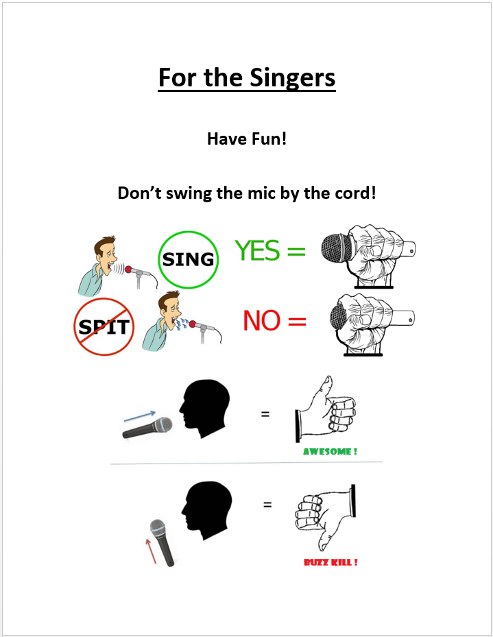 MtnKaraoke wrote: What thoughts do you have on the cuppers? I made a sign a while back (I think Chris Avis uses it in his books) that shows the right and wrong way to hold a mic. I've been thinking that I should figure out a way to attach a "grip-strap" to the body of the mic so that the natural method of holding the mic would be to slip your hand into the grip, kind of like on a camera body. I also thought, maybe half joking, about having a really horrible sounding buzz, crackle, wah-wah sound-effect handy for when anyone does cup the mic, I can feed that sound into the mix until they stop.  I have tried over and over, but frankly it's a losing battle. I just pot them down. Rarely someone will ask why, and if so I tell them that cupping the mic makes them sound horrible and increases feedback & distortion. Most, don't even notice. Remember, everyone else can see them cupping the mic too (and hear the distortion) so its a reflection on them...not you. The problem is exacerbated by stars doing it, either to look cool or out of ignorance. Snoop Dogg understands.  Eminem does not.