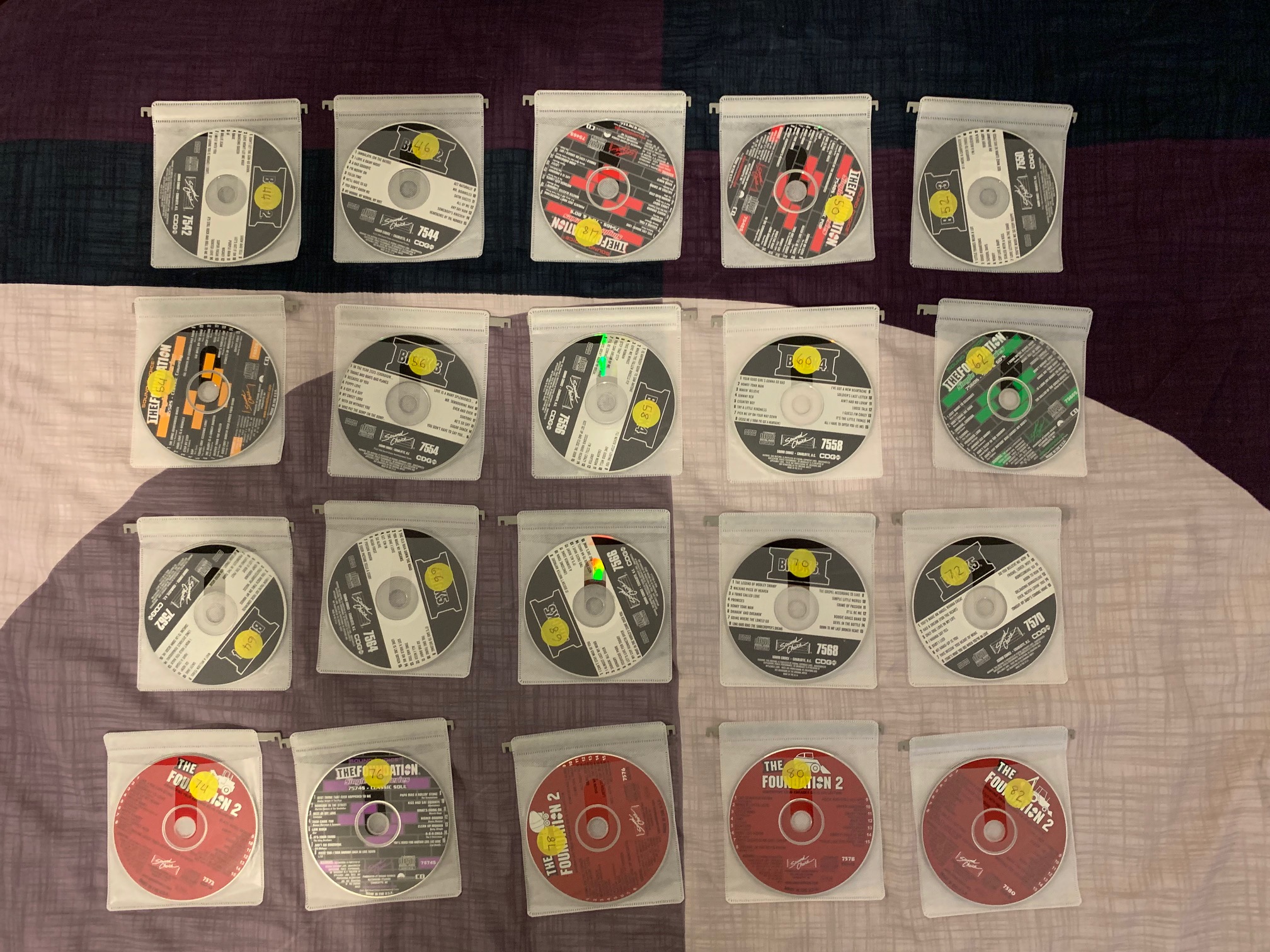 Total of 101 discs, SC7501 - SC7600 and SC8093. 15 songs per disc so 1515 in total.